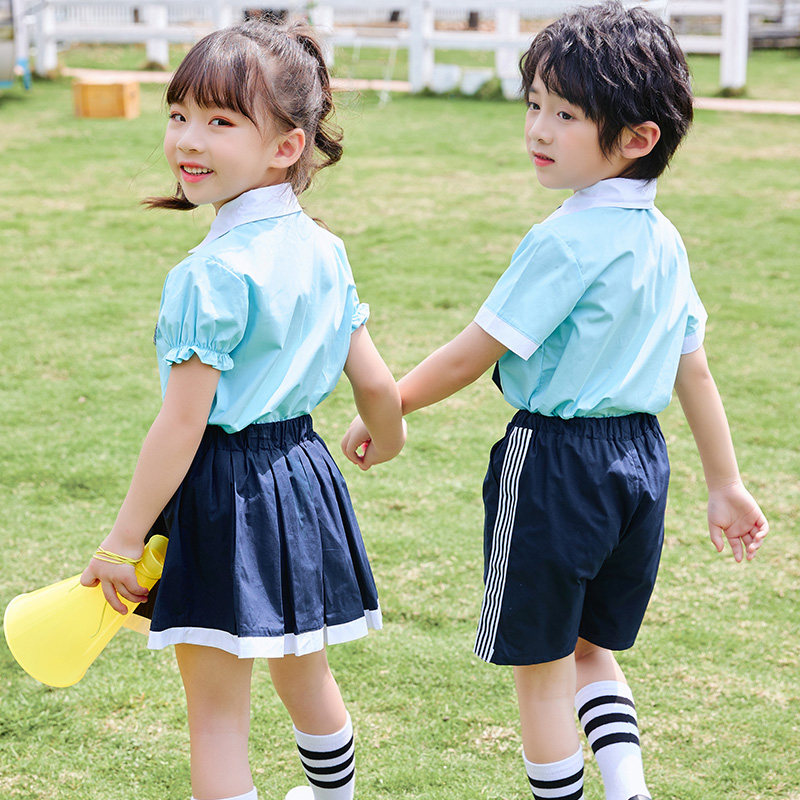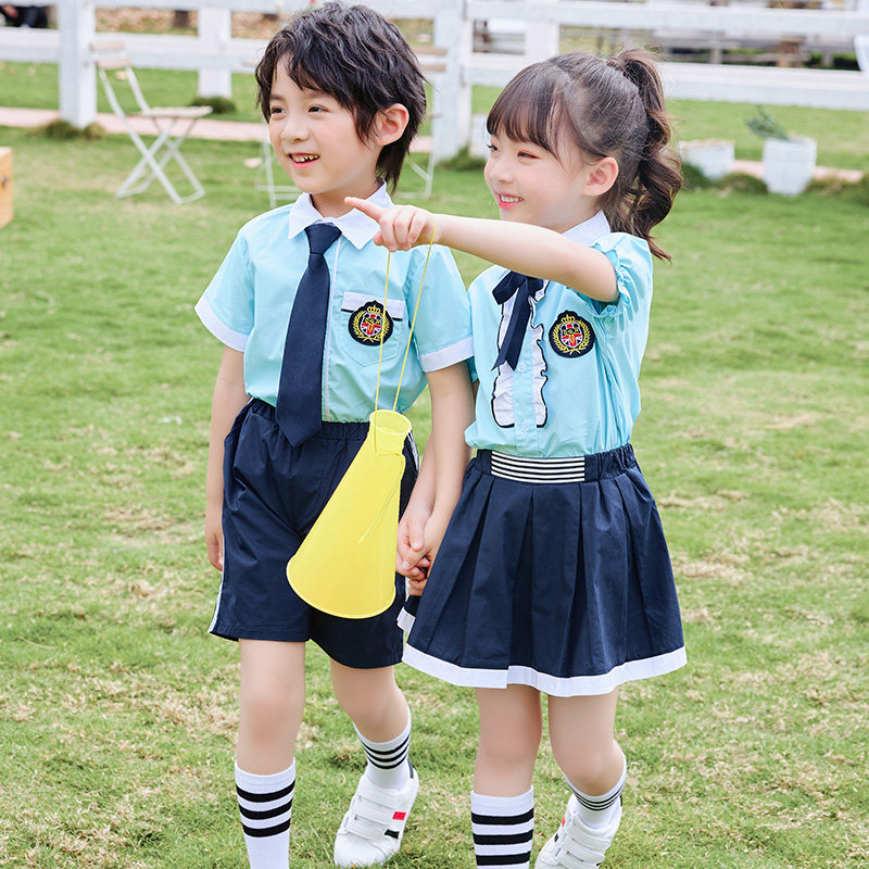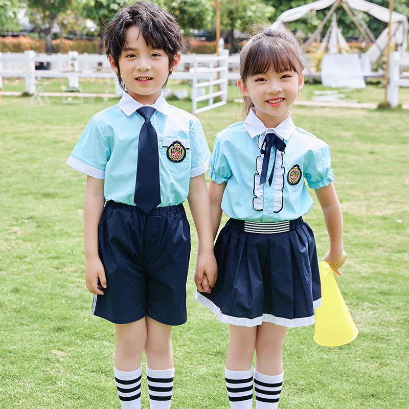 Kindergarten summer clothes, primary school uniforms, school uniforms, children's British style, graduation photos, class clothes, summer cotton short-sleeved suits