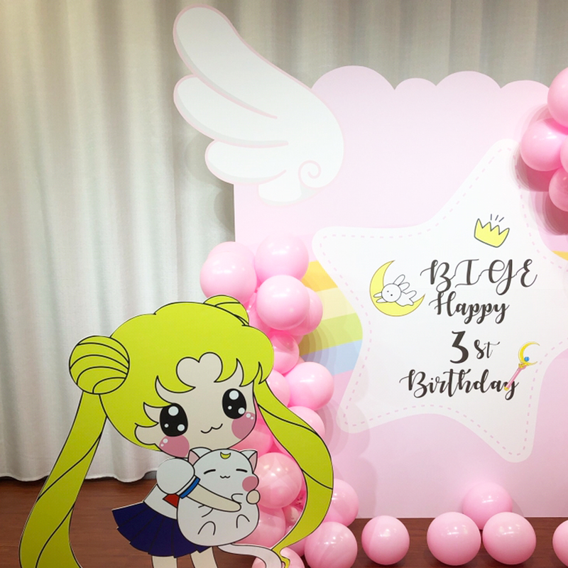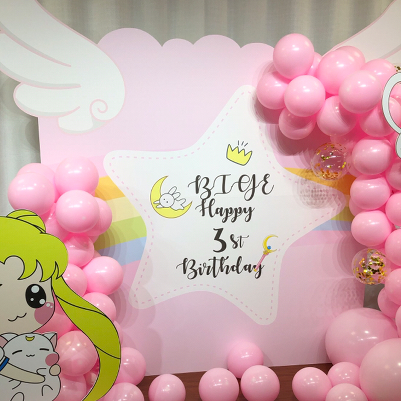 Beauty Girl 30 Days Pays Balloon Background Scene Pink Decorative baby Birthday Hotel Cartoon Greeting Card