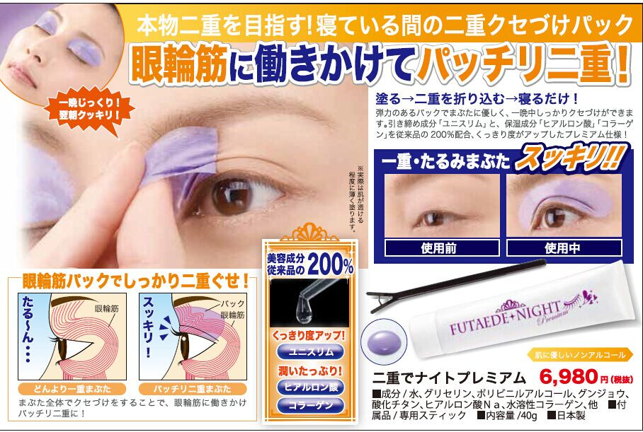 Japan FUTAEDE NIGHT Double Eyelid Setting Cream Permanent Fixing Big Eye Eye Device Traceless Invisible Non-Glue