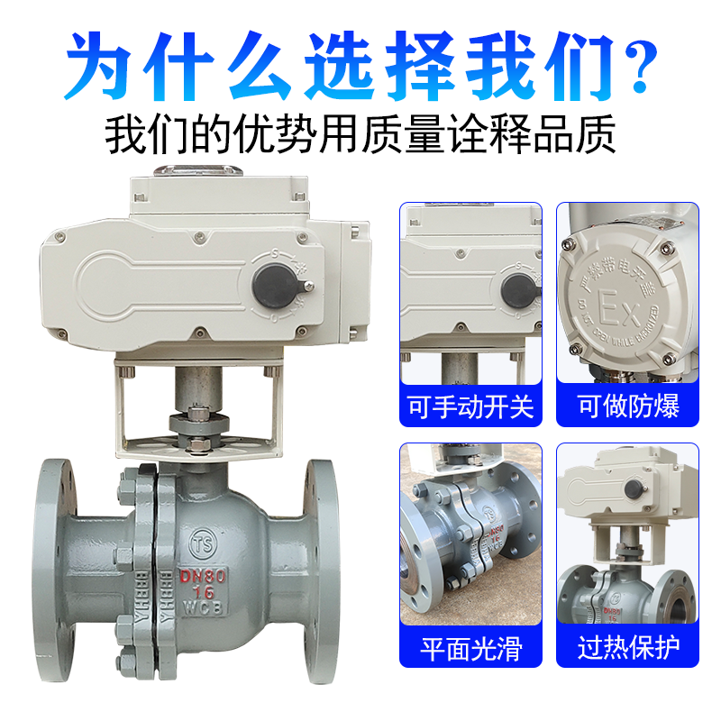 Electric ball valve cast steel stainless steel Q941F-16 high temperature steam flange shut-off valve 220V regulating switch valve