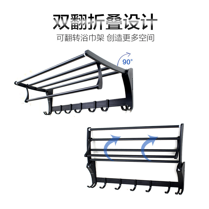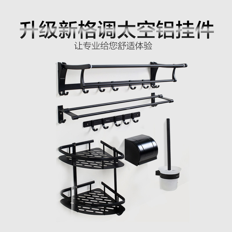 Farnsa Bathroom Pendant Package Matte Black Aluminum Alloy Bath Towel Rack Clothing Hook Corner Basket Paper Rack Six Pieces FE24007