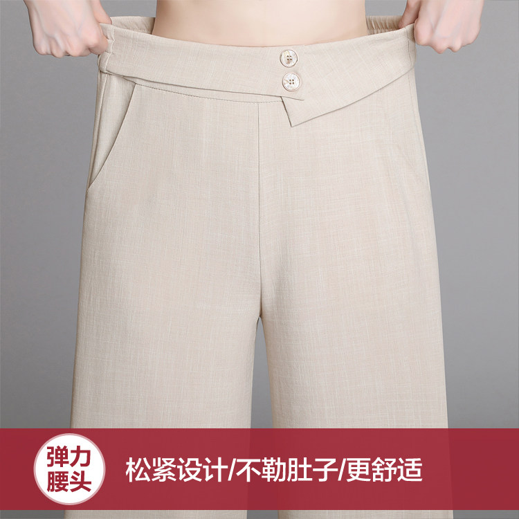Mom wide-leg pants women's summer thin section middle-aged women's loose straight ice silk trousers summer middle-aged and elderly women's pants
