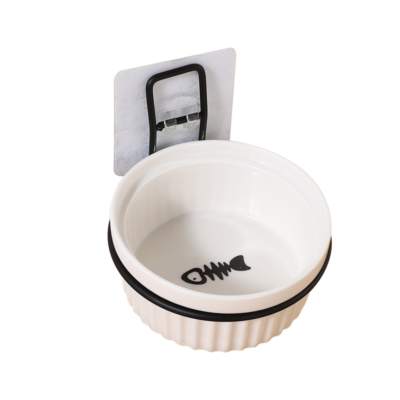 Kitten cat food fixed wall bowl ceramic pet bowl cat eating and drinking dual-purpose kitten special bowl cat bowl shallow mouth