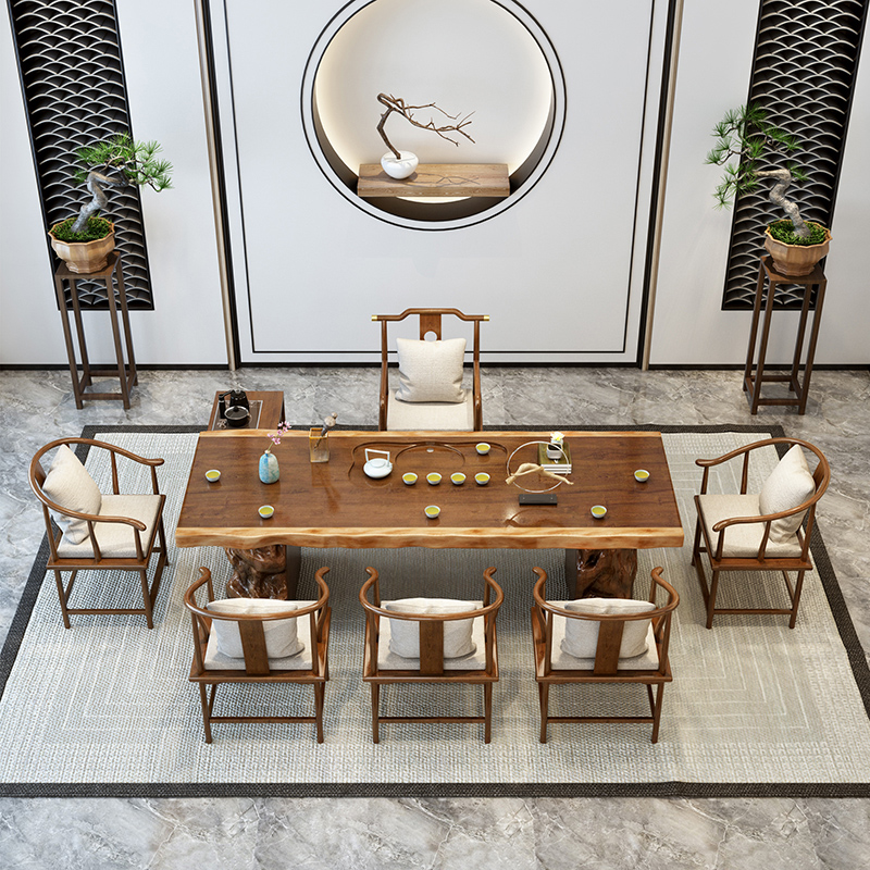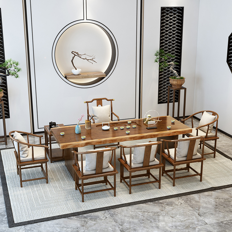 New Chinese tea table large plate tea table and chair combination solid wood kung fu tea table tea tray Zen tea table log tea sea