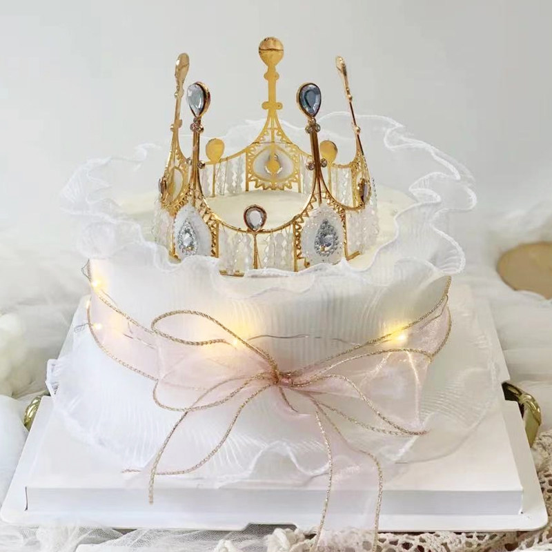 Valentine's Day crown cake decorated with ribbon bouquet cake net red seventh birthday plugin
