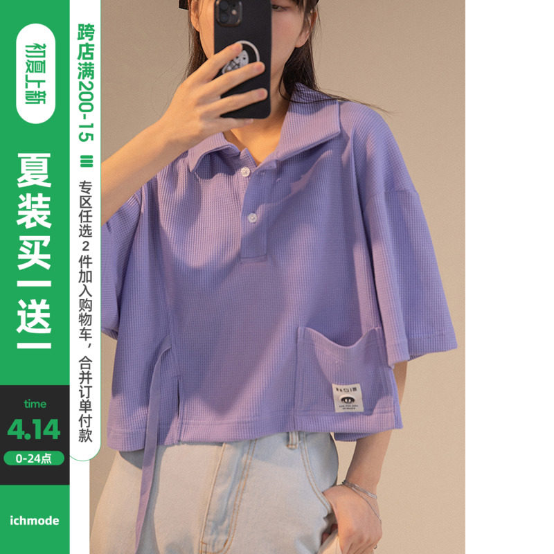 UBUIE Fish Dry Green Polo Collar Short Sleeve T-shirt Woman Summer Short small crowddesign Feel Loose Half Sleeve Blouse
