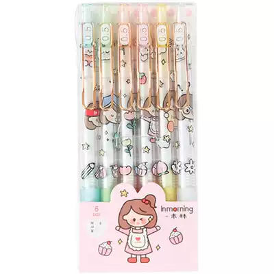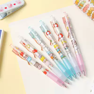 A wood forest gel pen girl heart cute super cute high value ins Japanese series Press meat ball pen creative press pen