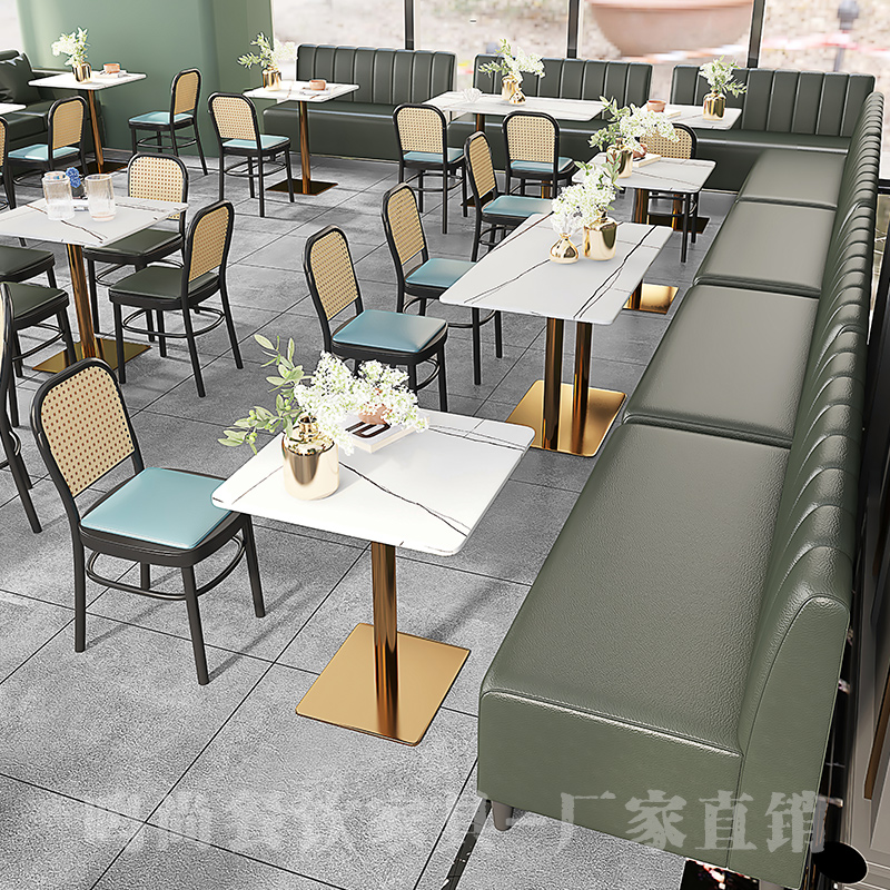 Tea restaurant hotel buffet dining room marble slate dining table and chair combination western restaurant dining wall card seat sofa