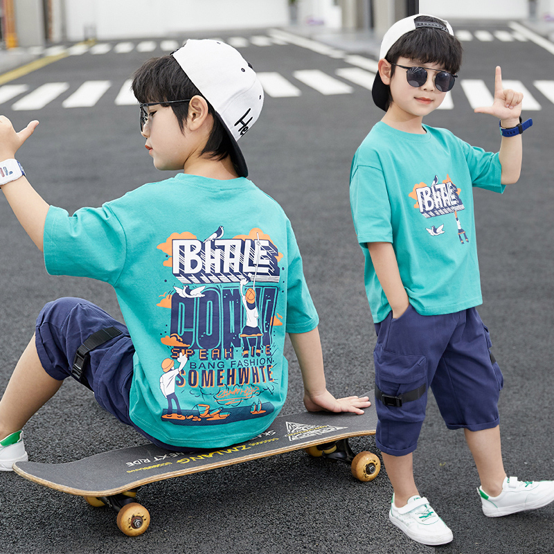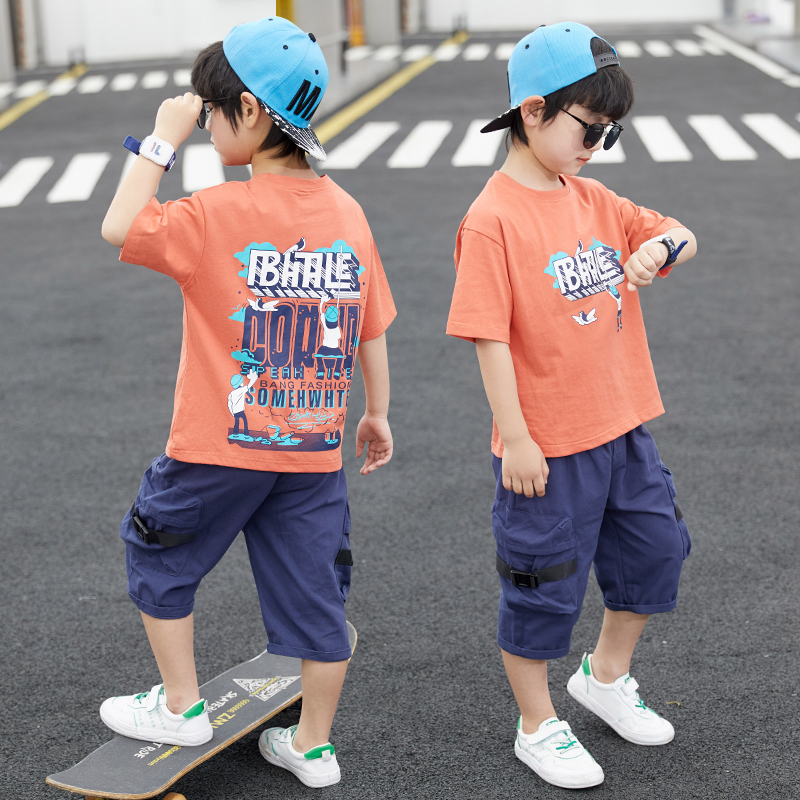 Boy's summer clothing suit 2022 new Korean version tide children suit handsome and large boy short sleeve two sets summer foreign pie