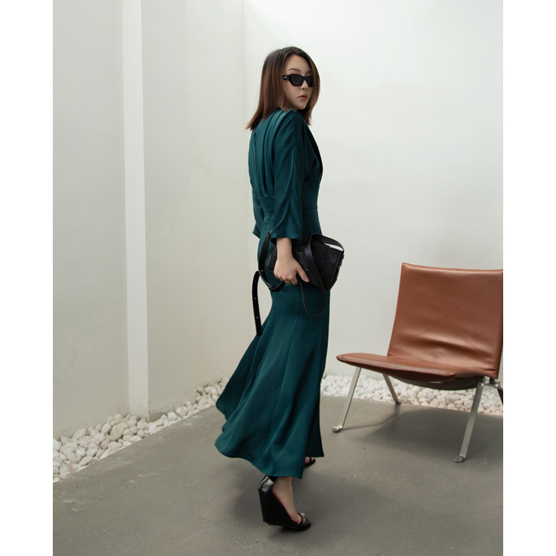 Z boss custom BAO WEN round collar 70% sleeves swarm with dress acetate mess X type A character swing open fork skirt woman-Taobao