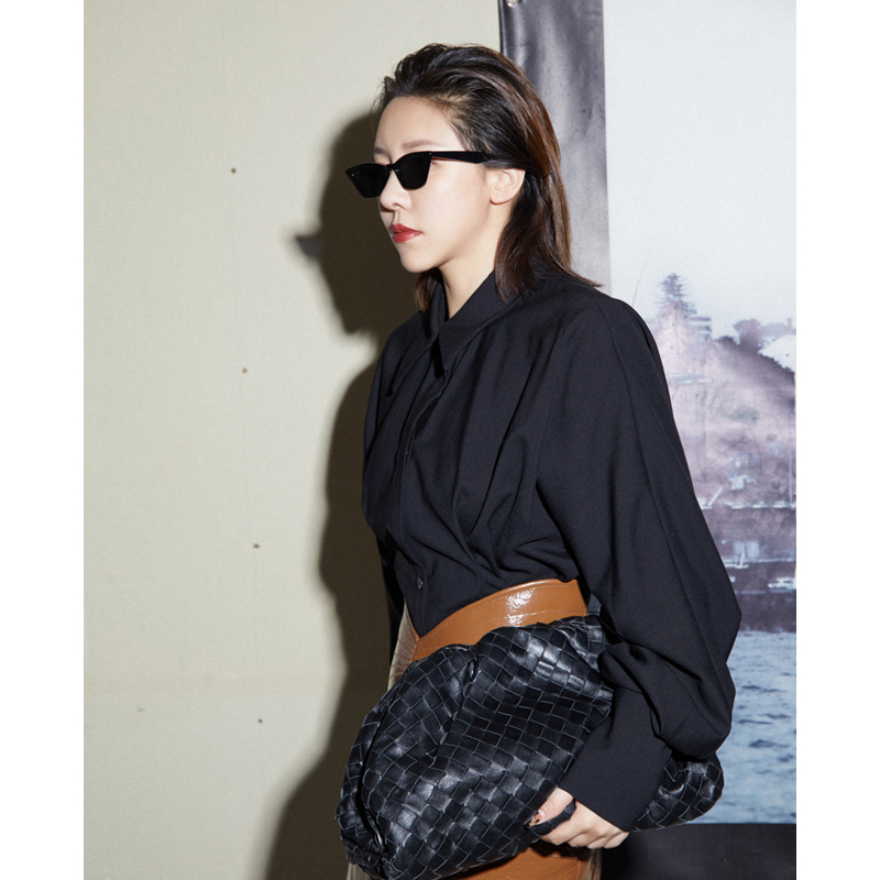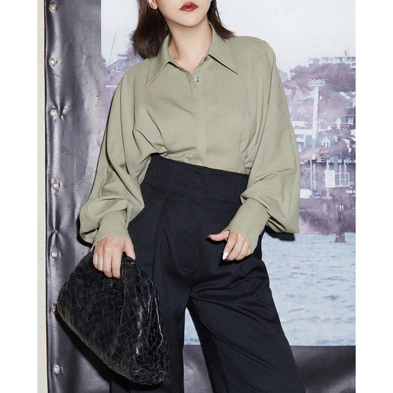 Boss Z 150g Ultra-thin Wool Bat Sleeve Slim Shirt Long-sleeved Multi-Wrinkle Design Mid-length Shirt Women