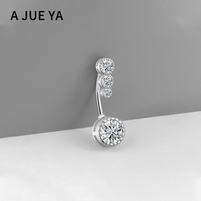 Sterling silver navel nail s925 silver navel buckle long navel ring short rod European and American sexy waist accessories high-grade navel nail women