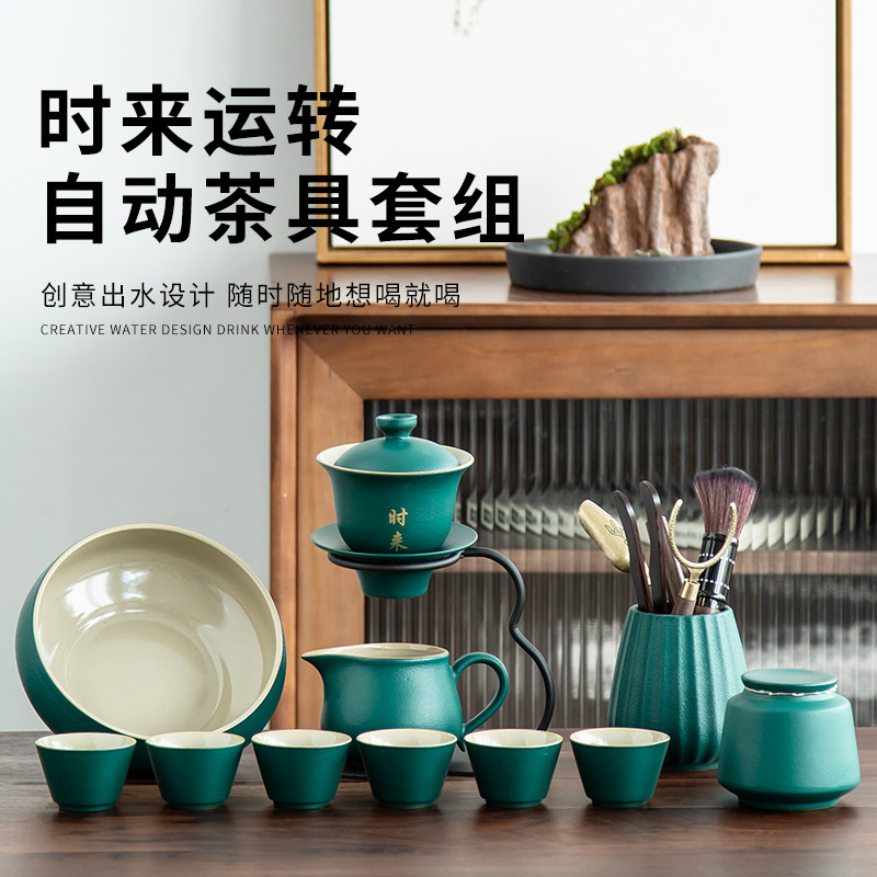 Ink green-Automatic tea set simple Zen black - Automatic tea set brief Chinese red - Automatic tea set simple quiet blue - Automatic tea set simple ink green - Automatic tea set with gift box Zen black - Automatic tea set with gift box