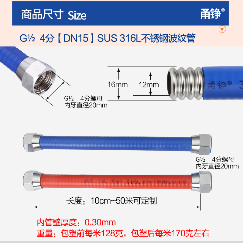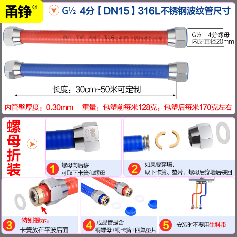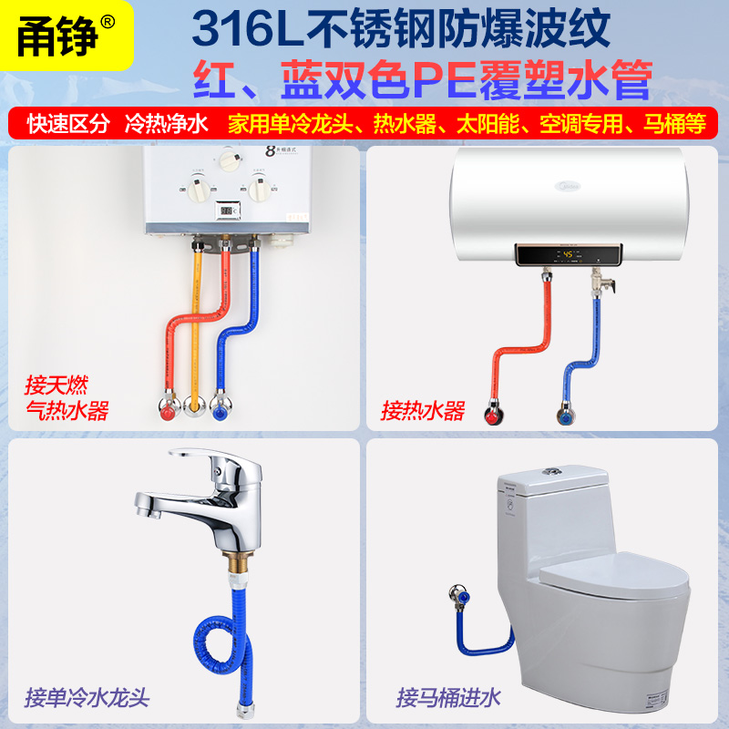 316L stainless steel bellows 4 water heater hot and cold inlet pipe water purifier solar high pressure explosion-proof water pipe