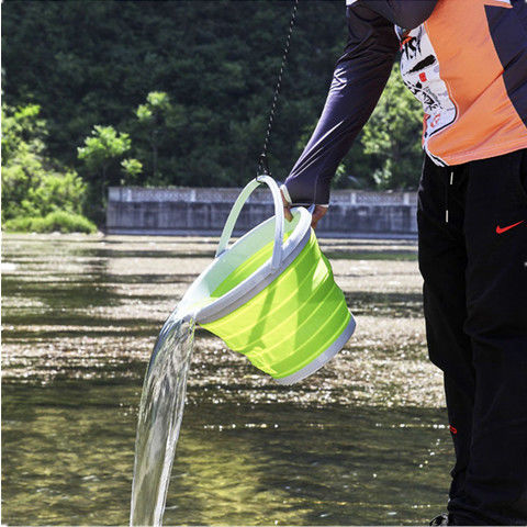 (thickened silicone folding bucket) outdoor thickened fishing bucket bucket portable fishing round bucket