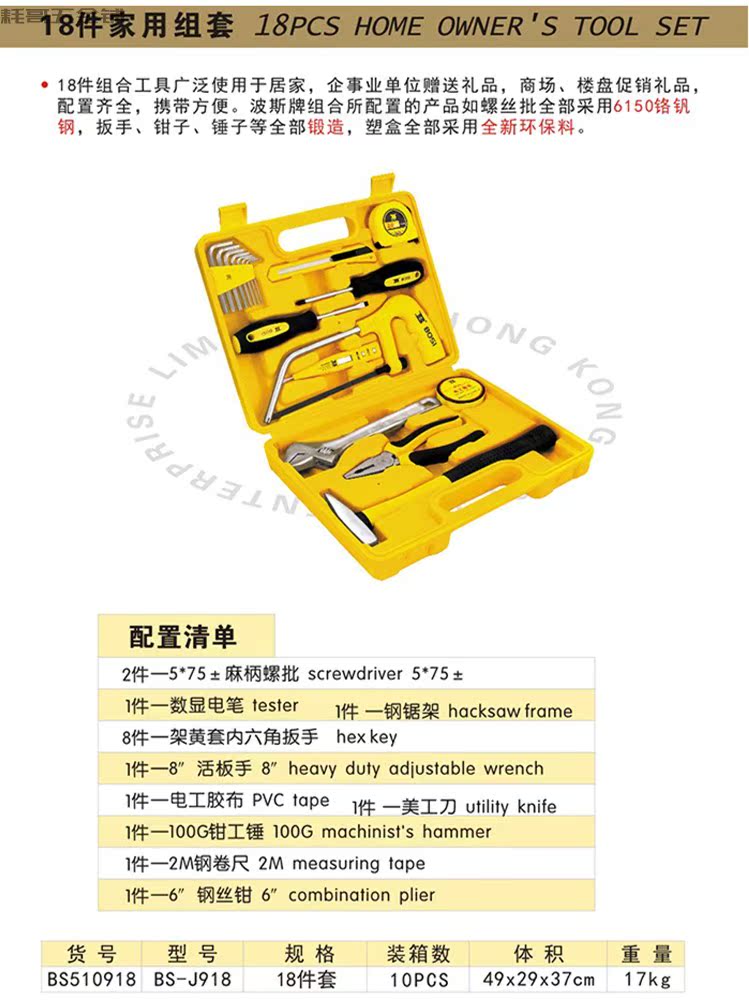 BOSI Persian Tools 18 Pieces Household Kit Repair Toolbox Gift Combination Toolbox Hardware Tools