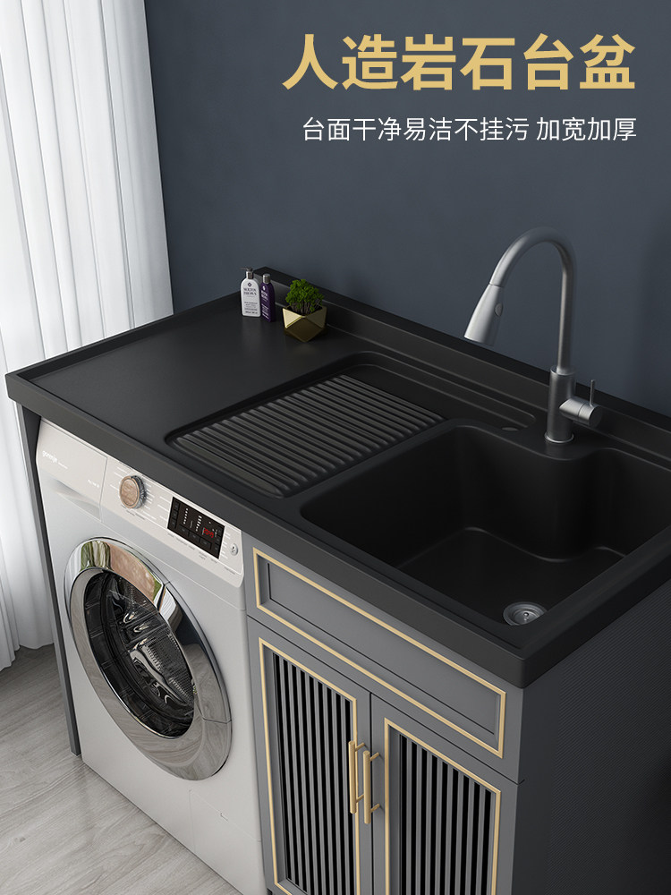 With washing machine cabinet with matching surface basin with tap with tap