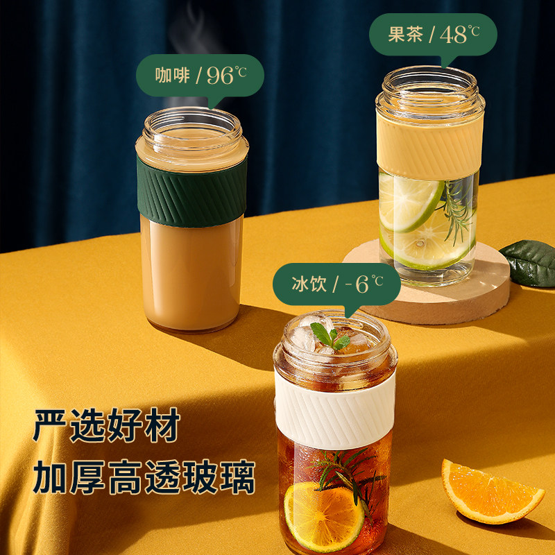 ECOTEK Glass Water Glass Women Portable Summer Brief Flowers Tea Coffee Cup Subhigh-grade Sense Tea Water Separation Accompanying Cup