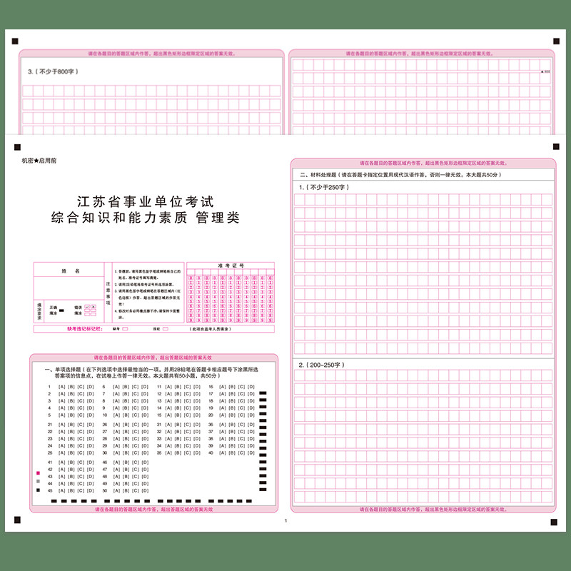 Spot Jiangsu provincial public institution recruitment examination comprehensive knowledge and ability quality management class answer card answer sheet comparable to exam paper can be customized all kinds of answer sheet