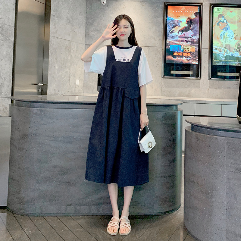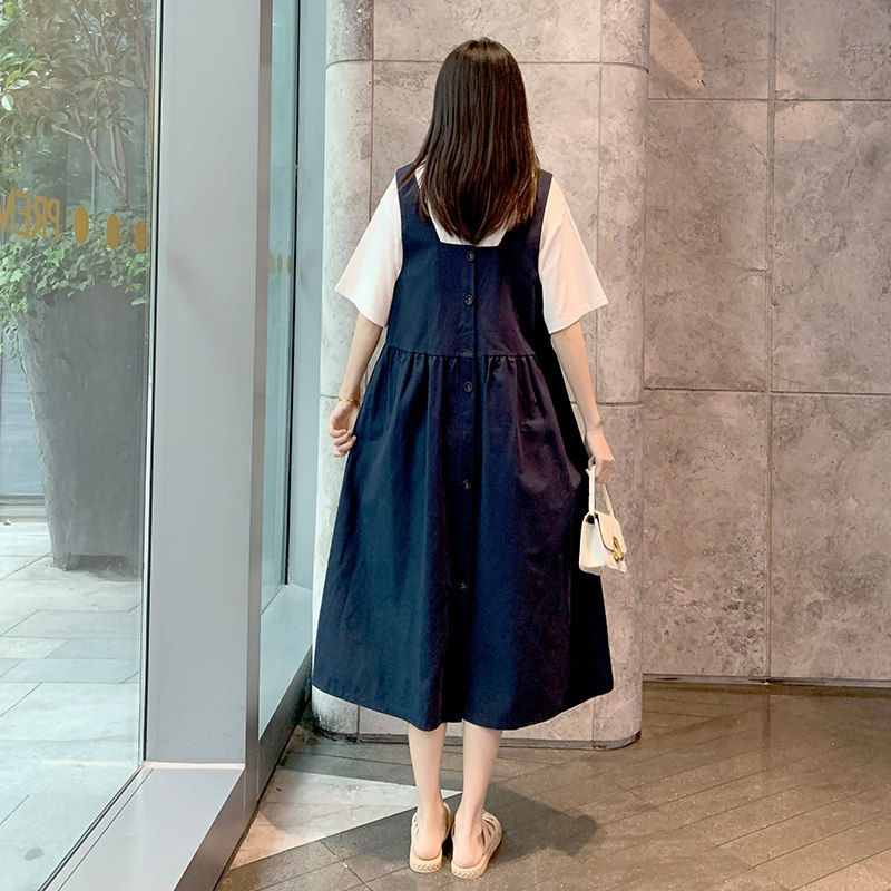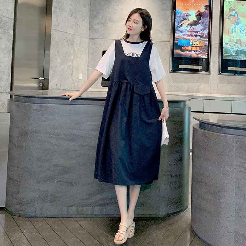 Maternity suit dress 2021 spring and summer new loose fashion trendy mom going out small fresh foreign style suspender skirt trendy