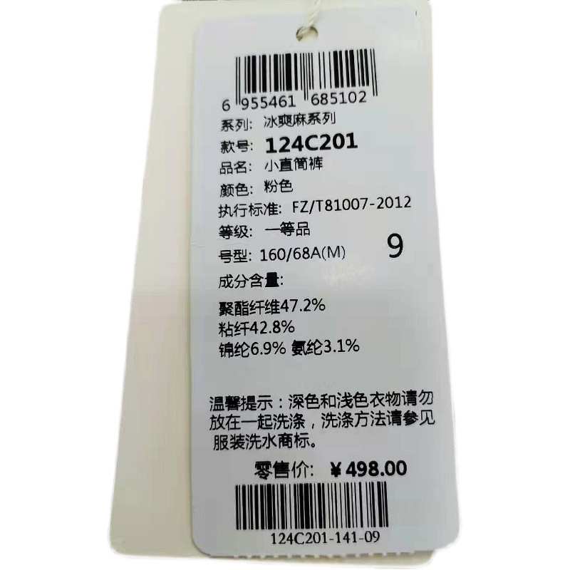 Ming women's pants 124C201 nine points small straight pants thin section mid-waist casual women's pants Taiwan Ming 2021 summer counter