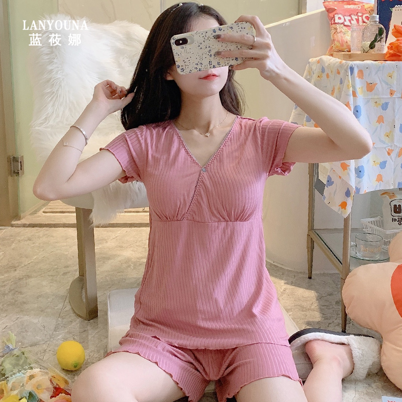 Modal confinement clothes August 9 spring and autumn postpartum breastfeeding nursing home clothes summer thin section pregnant women pajamas short sleeves
