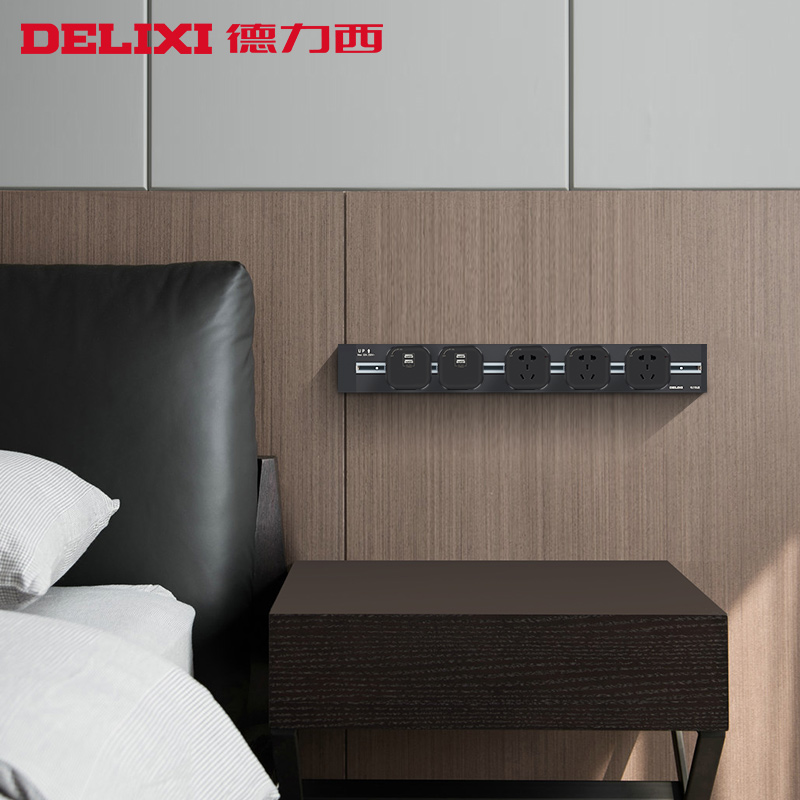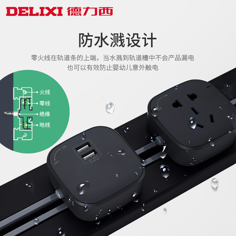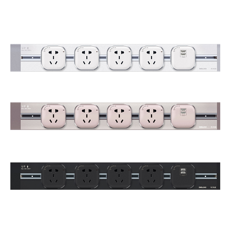 Delixi track socket wall with USB2 kitchen household wall-mounted embedded sliding plug row multi-plug plugboard