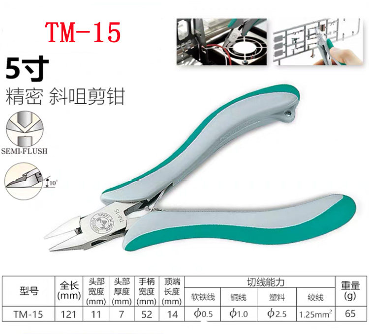 Imported Japan TTC corner field Precision inclined nozzle clippers TM-15 120mm Mini diagonal cut lip clippers