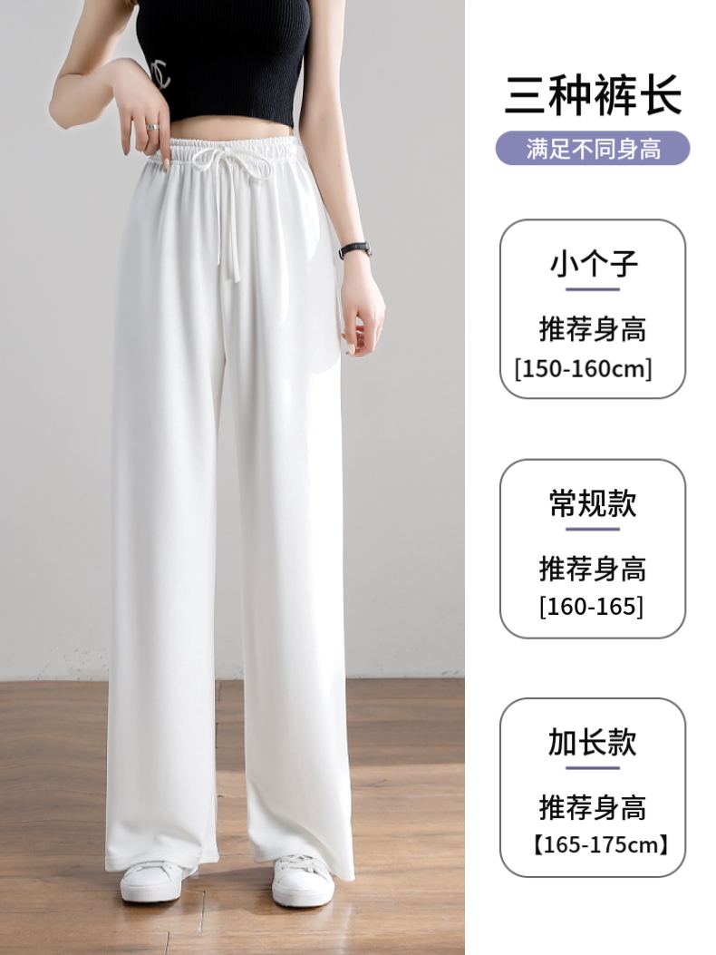 Wide-leg pants women's summer thin section high waist drape white pants cupro loose straight casual pants drawstring ice silk