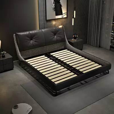 zhen leather bed master bedroom light luxury simple 1 8 meters double nuptial bed black Italian soft rely on modern minimalist trundle