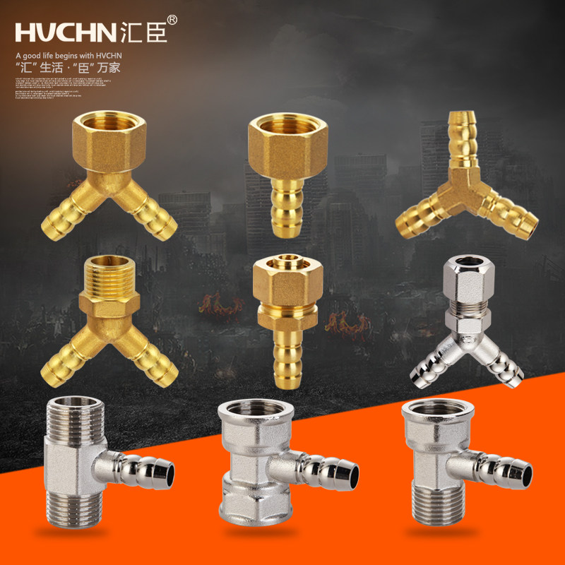Copper gas pipe Pagoda three-way joint Gas gas water heater one-point two-way leather pipe interface Green head