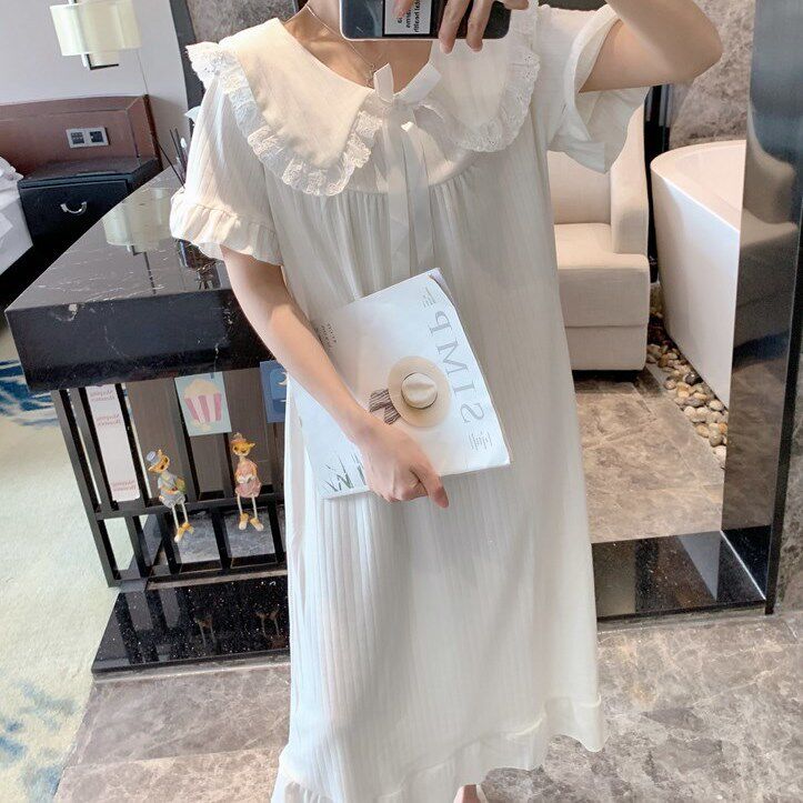 Lovely Day Ensemble Sleeping Dress Lady Sweetness Princess Wind Doll Collar Sleeping Skirt Woman Summer 2021 New Foreign Dress Home Clothes