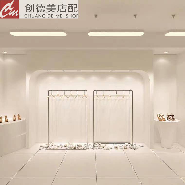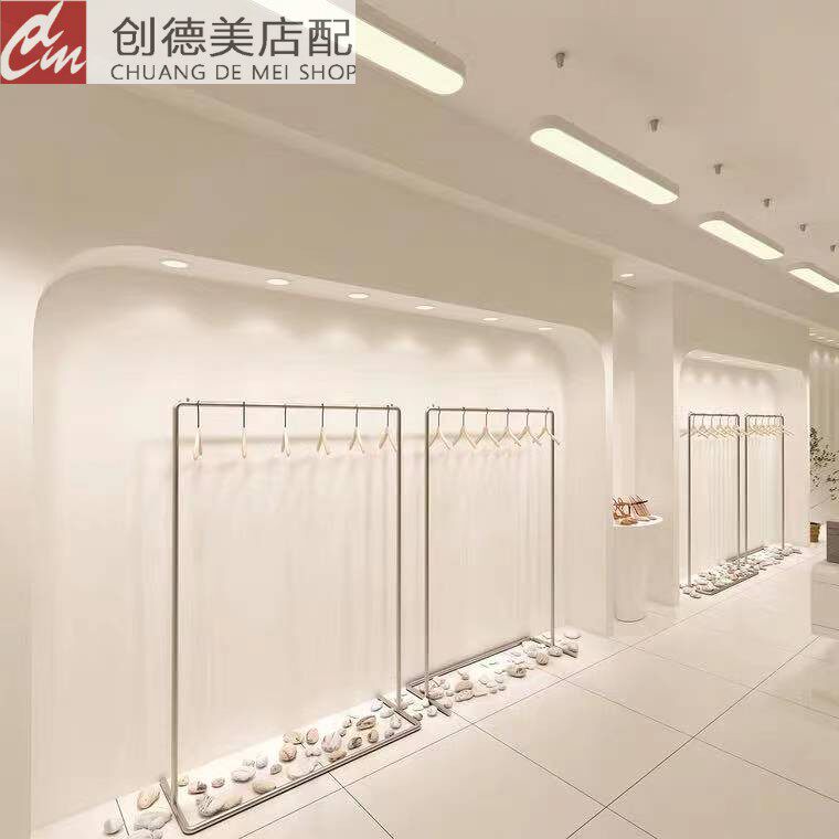 Clothing store stainless steel island rack front side hanging floor hanger women's clothing shelf display rack silver display rack