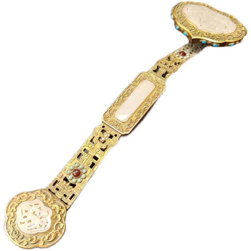 Qing Dynasty Gold Instrumental Large Pendulum Gold Inlaid Jade Ruyi Inlaid And Field Jade Ruby Green Pine Stone Qing Antique Old Objects