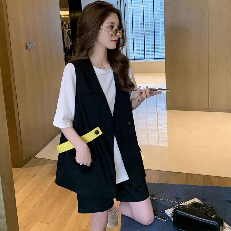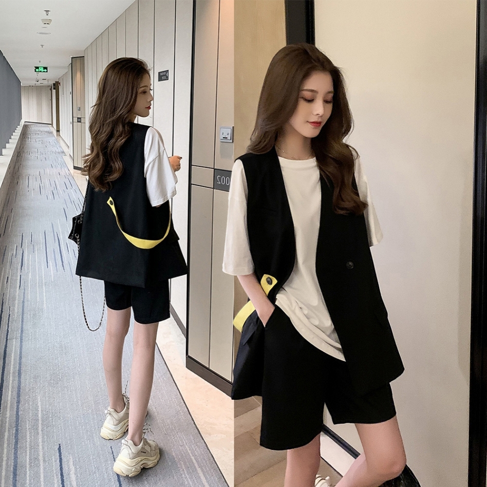 Maternity top Women's summer suit fashion shorts short sleeve suit vest Summer thin casual summer two-piece set