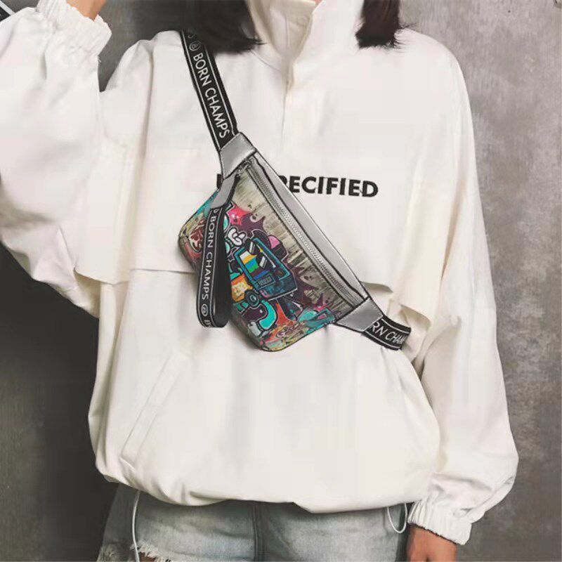 Graffiti messenger waist bag Korean version all-match mini chest bag honey bungee bag