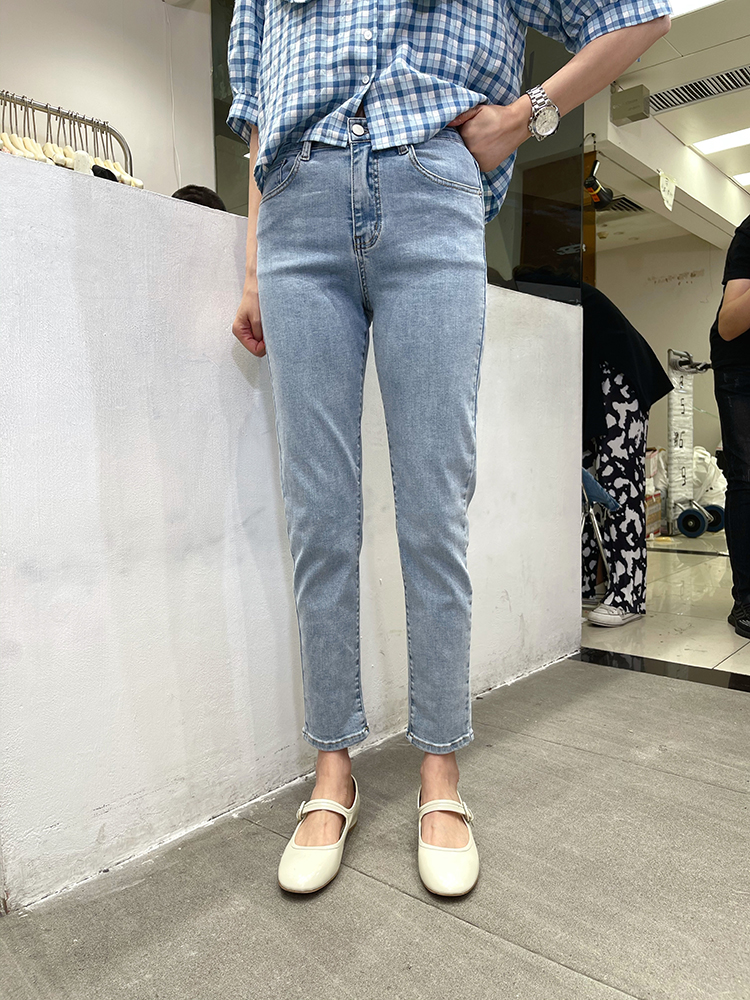 wipelia Chen Ji Jeans Woman 100 lap Hitch slim slim straight cylinder 90% pants jeans pantypants black W05