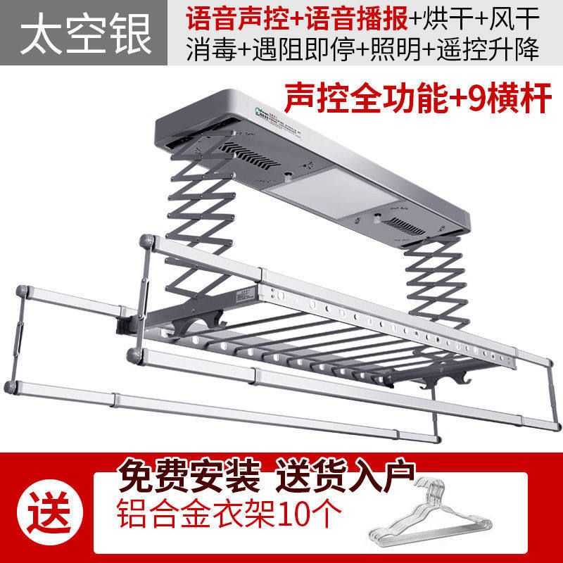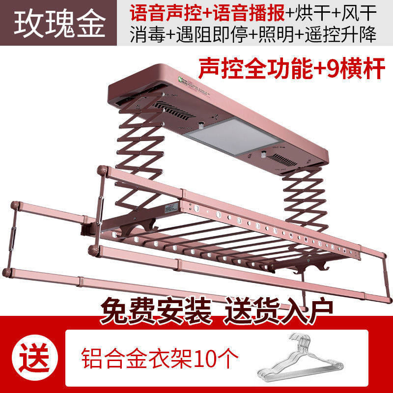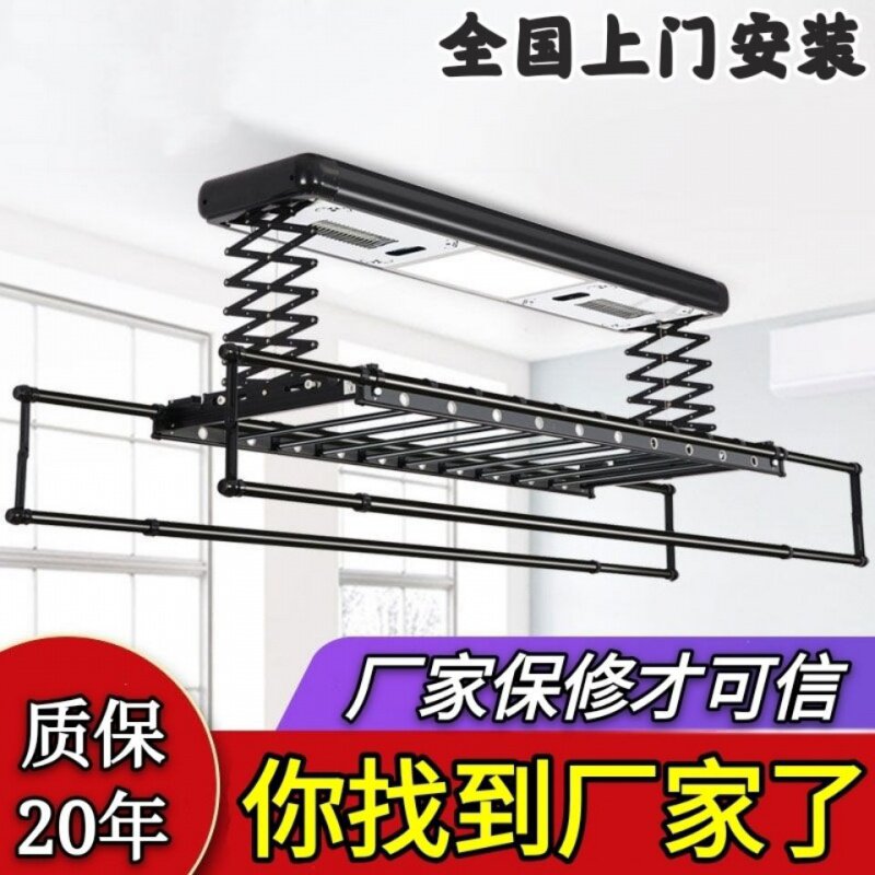 Electric lifting clothes hanger telescopic intelligent remote control with lighting drying