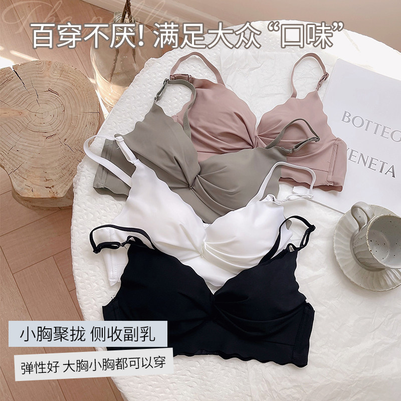 Summer without trace underwear thin female bra gathering steel-free ring bra to collect breast breast against dropping white in summer
