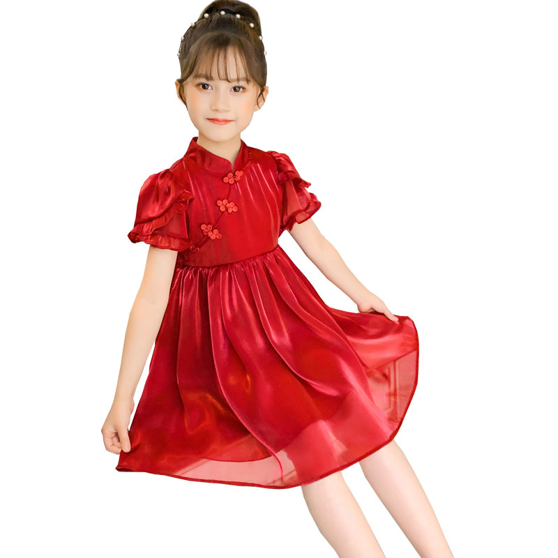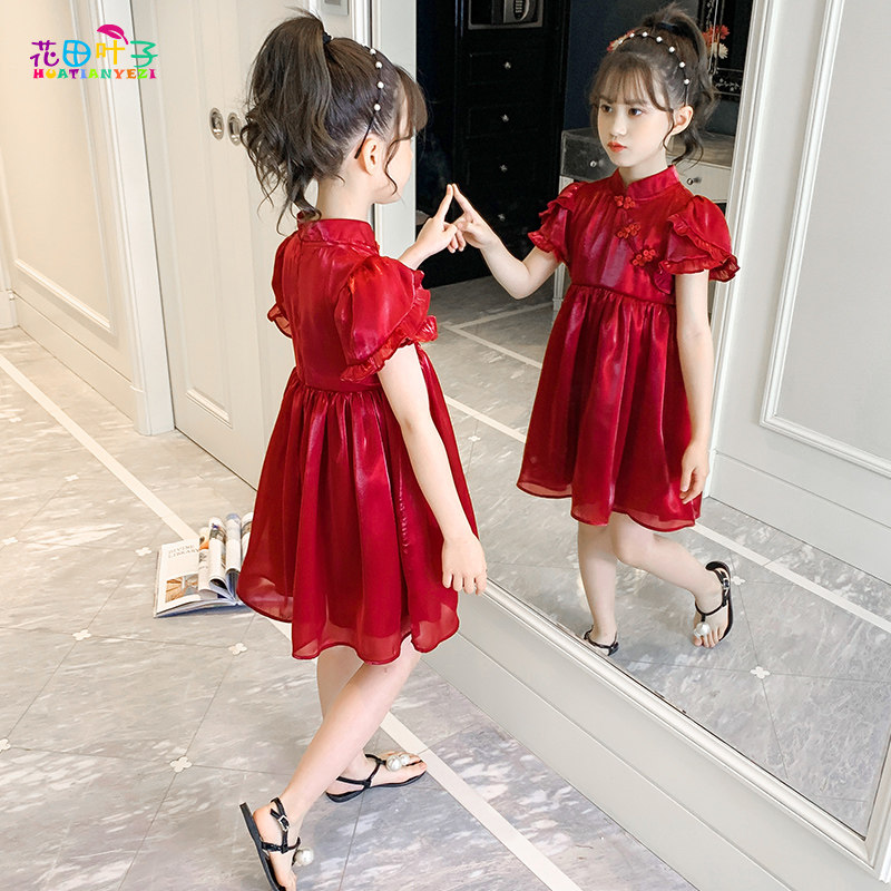 Girl dress summer dress 7-year-old girl cheongsam 8 children Chinese style Hanfu foreign summer red princess skirt