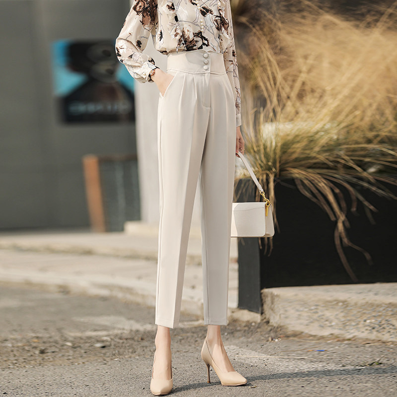 Mularsa High Sensation Rice White 90% Western Pants Woman 2021 Fall High Waist Hanging Sensation Straight Drum Kharen Pants