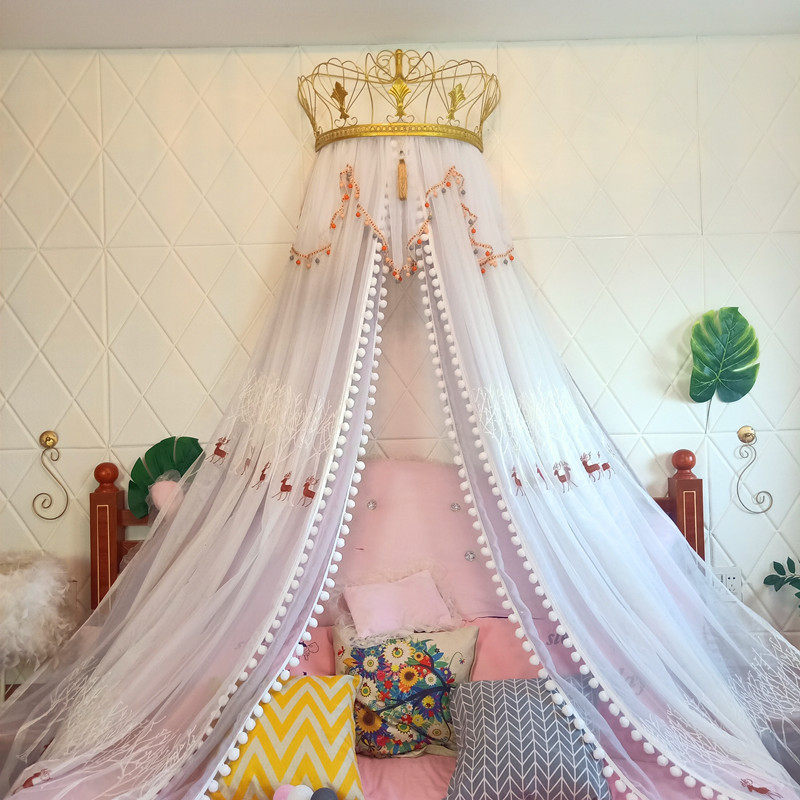 Bed Mantle Bed Head Yarn Small Deer Embroidered wave Decorative Yarn Male main Wind Girls Palace Court General European-style Heavy Industries with Crown