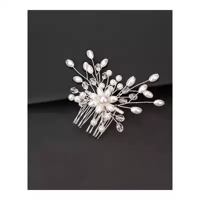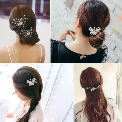 Bride headdress hair small black clip hairpin children imitation pearl head flower fashion temperament plate hair accessories bridesmaid plug comb U-shaped clip