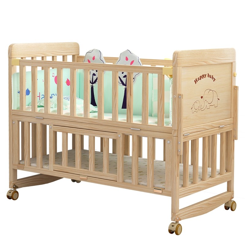 Multifunctional solid wood crib variable desk baby bed stitching big bed newborn bb bed mobile cradle bed crib