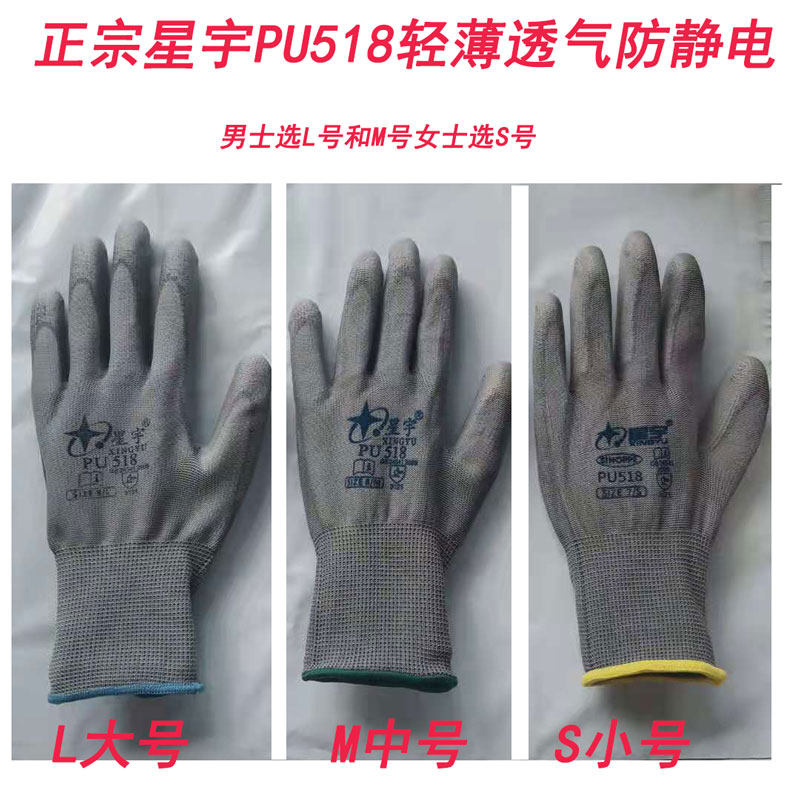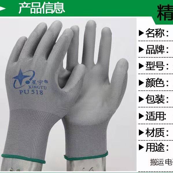 Authentic Xingyu pu 518 labor insurance gloves thin pu glue coated light breathable wear-resistant anti-static nylon dust-free