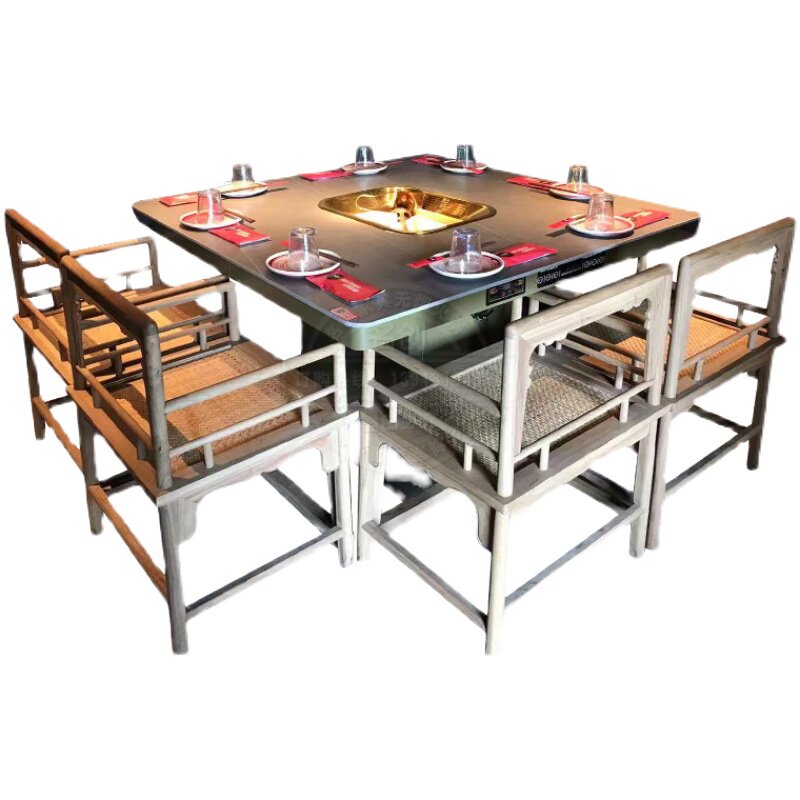 Rock slab induction cooker gas stove paper wrapped fish smokeless purification hot pot table and chair combination under the smoke extraction equipment without pipes