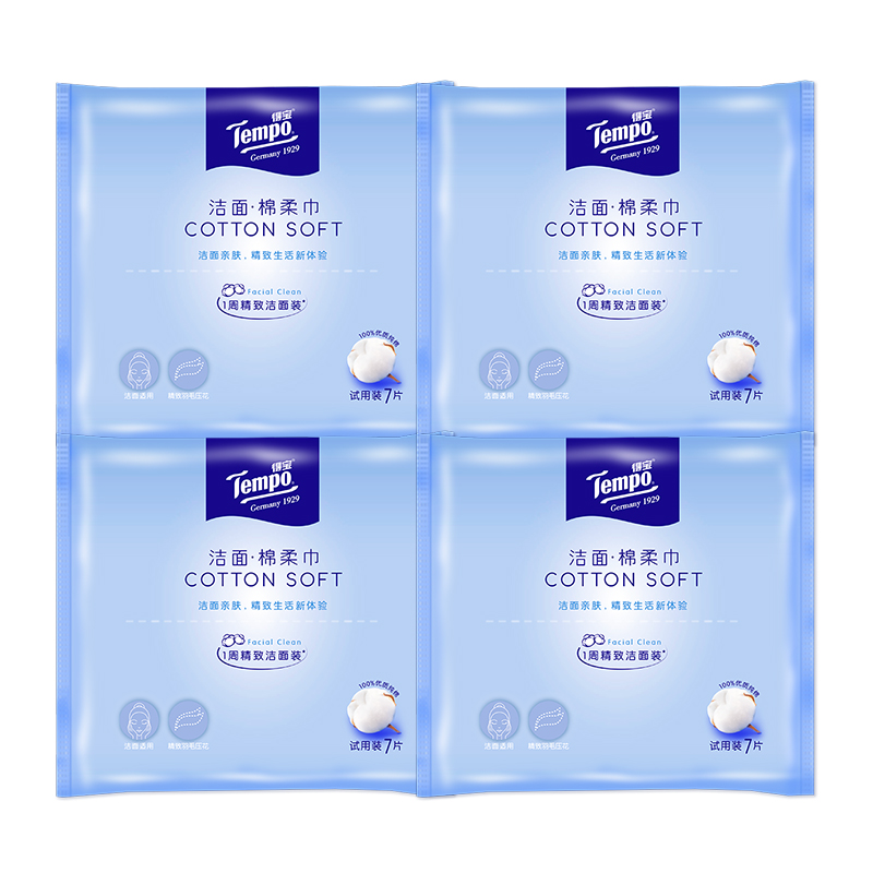 (Member Daily stopover) Tempo Tempo disposable full cotton soft towel wash face towels dry and wet with 7-draw 4 packs