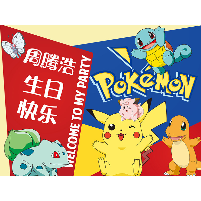 Birthday party Birthday Party Background Wall Bu Botanical Corpse poster placement Decorative Balloons Super Fly-Man Picachu