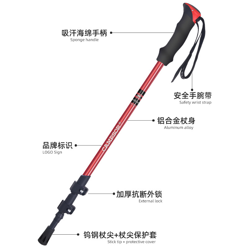 Climbing stick ultra-light cane telescopic folding carbon fiber male and female with versatile hiking Mountain Outdoor equipped with anti-slip