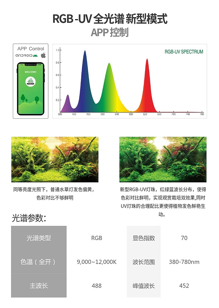 Wilkong Fish Bay Lighting Lighting Lights LED Flatwater Lamp Full Spectrum GBAquarium Lighting Increased Grass Cylinder Light